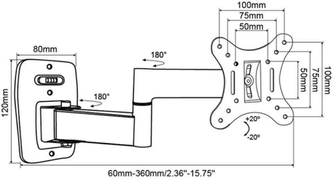 Compatibility: Full motion heavy duty wall mounts for most 13 to 27 inches flat panel display up to 15KG/33lbs, with VESA 75x75mm to 100x100mm. Detail: 75x75mm(3”x3”),100x100mm(4”x4”).