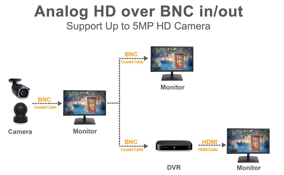 - Enhanced Monitoring Capabilities for Home Security: Elevate your home security with our surveillance monitor. With 1x BNC outputs, you can expand your system effortlessly, connecting additional monitors or recording devices for comprehensive surveillance coverage.